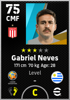 . Gabriel Neves is a Center Midfielder footballer from Uruguay who plays for Buenos Aires Rb in eFootball 2026.