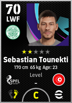 . Sebastian Tounekti is a Left Wing Forward footballer from Tunisia who plays for Celtic Fc in eFootball 2026.