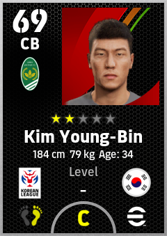 . Kim Young-Bin is a Center Back footballer from Korea Republic who plays for Jeonju G in eFootball 2026.