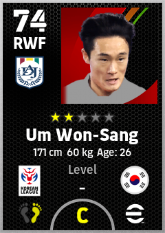. Um Won-Sang is a Right Wing Forward footballer from Korea Republic who plays for Daejeon Rgw in eFootball 2026.