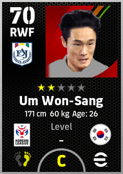 . Um Won-Sang is a Right Wing Forward footballer from Korea Republic who plays for Daejeon Rgw in eFootball 2026.