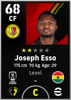 . Joseph Esso is a Center Forward footballer from Ghana who plays for Negeri Sembilan Fc in eFootball 2026.