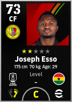. Joseph Esso is a Center Forward footballer from Ghana who plays for Negeri Sembilan Fc in eFootball 2026.