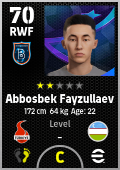 . Abbosbek Fayzullaev is a Right Wing Forward footballer from Uzbekistan who plays for Rams Başakşehir Fk in eFootball 2026.