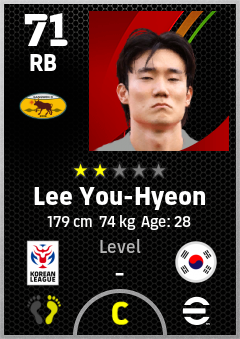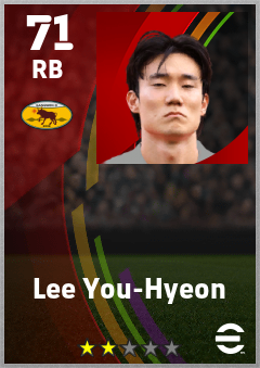 . Lee You-Hyeon is a Right Back footballer from Korea Republic who plays for Gangwon O in eFootball 2026.