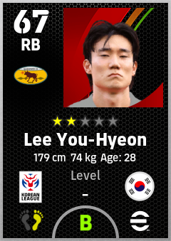 . Lee You-Hyeon is a Right Back footballer from Korea Republic who plays for Gangwon O in eFootball 2026.