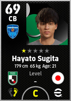 . Hayato Sugita is a Center Back footballer from Japan who plays for Yokohama Fc in eFootball 2026.