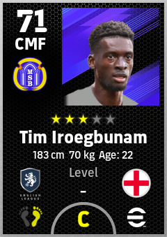 . Tim Iroegbunam is a Center Midfielder footballer from England who plays for Everton B in eFootball 2026.