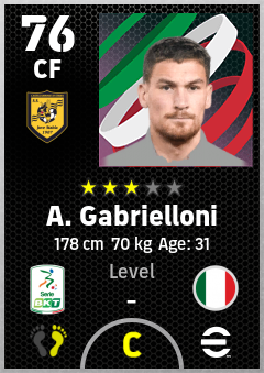 . A. Gabrielloni is a Center Forward footballer from Italy who plays for Stabia Gb in eFootball 2026.