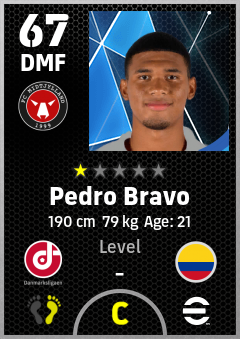 . Pedro Bravo is a Defensive Midfielder footballer from Colombia who plays for Midtjylland Sr in eFootball 2026.