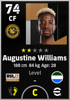 . Augustine Williams is a Center Forward footballer from Sierra Leone who plays for Pittsburgh Riverhounds in eFootball 2026.