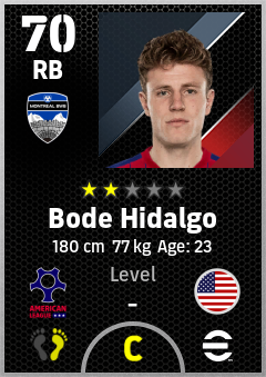 . Bode Hidalgo is a Right Back footballer from United States who plays for Montreal Bwb in eFootball 2026.