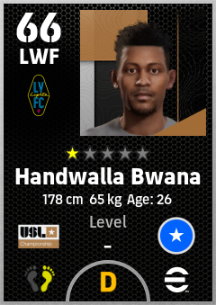 . Handwalla Bwana is a Left Wing Forward footballer from Somalia who plays for Las Vegas Lights Fc in eFootball 2026.