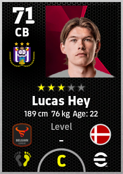 . Lucas Hey is a Center Back footballer from Denmark who plays for Anderlecht Pw in eFootball 2026.