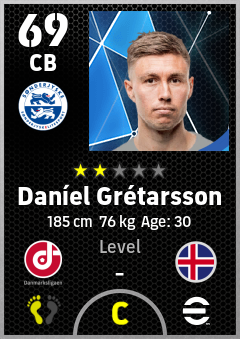 . Daníel Grétarsson is a Center Back footballer from Iceland who plays for Haderslev Hb in eFootball 2026.