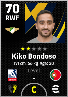 . Kiko Bondoso is a Right Wing Forward footballer from Portugal who plays for Moreirense Fc in eFootball 2026.
