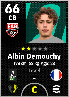 . Albin Demouchy is a Center Back footballer from France who plays for En Avant Guingamp in eFootball 2026.