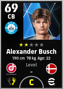 . Alexander Busch is a Center Back footballer from Denmark who plays for Silkeborg Rh in eFootball 2026.