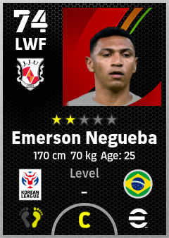 . Emerson Negueba is a Left Wing Forward footballer from Brazil who plays for Jeju O in eFootball 2026.
