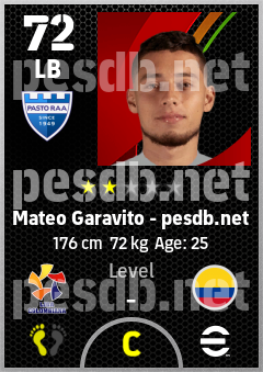 . Mateo Garavito is a Left Back footballer from Colombia who plays for Pasto Raa in eFootball 2026.