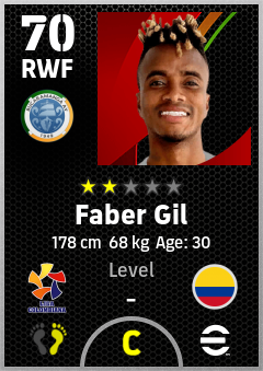 . Faber Gil is a Right Wing Forward footballer from Colombia who plays for Bucaramanga Av in eFootball 2026.
