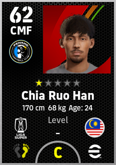. Chia Ruo Han is a Center Midfielder footballer from Malaysia who plays for Penang Fc in eFootball 2026.
