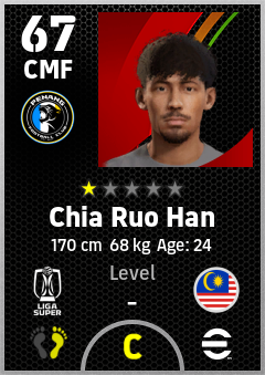 . Chia Ruo Han is a Center Midfielder footballer from Malaysia who plays for Penang Fc in eFootball 2026.