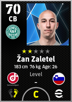 . Žan Zaletel is a Center Back footballer from Slovenia who plays for Viborg Gh in eFootball 2026.