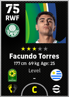 . Facundo Torres is a Right Wing Forward footballer from Uruguay who plays for Se Palmeiras in eFootball 2026.