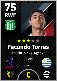 . Facundo Torres is a Right Wing Forward footballer from Uruguay who plays for Austin Gb in eFootball 2026.