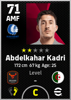 . Abdelkahar Kadri is a Attacking Midfielder footballer from Algeria who plays for Gent Bw in eFootball 2026.