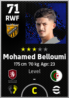 . Mohamed Belloumi is a Right Wing Forward footballer from Algeria who plays for Hull Ob in eFootball 2026.