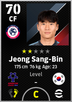 . Jeong Sang-Bin is a Center Forward footballer from Korea Republic who plays for St. Louis Pb in eFootball 2026.