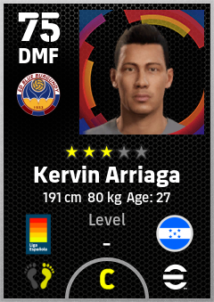 . Kervin Arriaga is a Defensive Midfielder footballer from Honduras who plays for Levante Ra in eFootball 2026.
