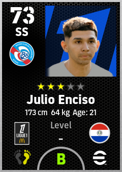 . Julio Enciso is a Second Striker footballer from Paraguay who plays for Rc Strasbourg Alsace in eFootball 2026.