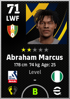 . Abraham Marcus is a Left Wing Forward footballer from Nigeria who plays for Cf Estrela Da Amadora in eFootball 2026.