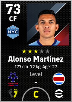 . Alonso Martínez is a Center Forward footballer from Costa Rica who plays for New York City B in eFootball 2026.