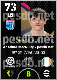 . Anselmo Macnulty is a Left Back footballer from Republic Of Ireland who plays for Pec Zwolle in eFootball 2026.