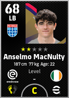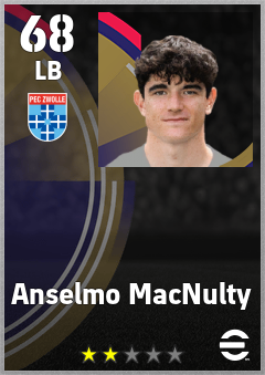 . Anselmo Macnulty is a Left Back footballer from Republic Of Ireland who plays for Pec Zwolle in eFootball 2026.