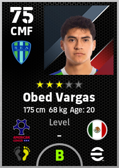 . Obed Vargas is a Center Midfielder footballer from Mexico who plays for Seattle Gb in eFootball 2026.