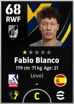 . Fabio Blanco is a Right Wing Forward footballer from Spain who plays for Vitória Sc in eFootball 2026.