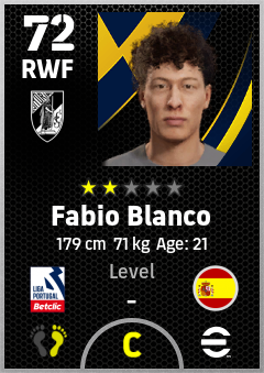 . Fabio Blanco is a Right Wing Forward footballer from Spain who plays for Vitória Sc in eFootball 2026.