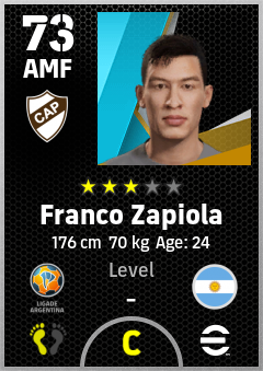 . Franco Zapiola is a Attacking Midfielder footballer from Argentina who plays for Vicente López M in eFootball 2026.
