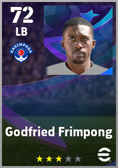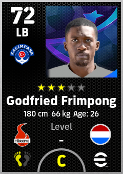 . Godfried Frimpong is a Left Back footballer from Netherlands who plays for Kasımpaşa Sk in eFootball 2026.