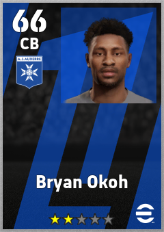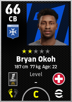 . Bryan Okoh is a Center Back footballer from Switzerland who plays for Aj Auxerre in eFootball 2026.
