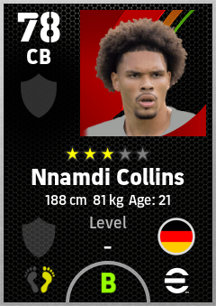 . Nnamdi Collins is a Center Back footballer from Germany who plays for Eintracht Frankfurt in eFootball 2026.