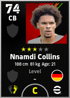 . Nnamdi Collins is a Center Back footballer from Germany who plays for Eintracht Frankfurt in eFootball 2026.