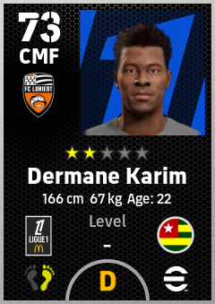 . Dermane Karim is a Center Midfielder footballer from Togo who plays for Fc Lorient in eFootball 2026.