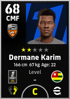 . Dermane Karim is a Center Midfielder footballer from Togo who plays for Fc Lorient in eFootball 2026.