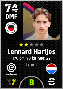 . Lennard Hartjes is a Defensive Midfielder footballer from Netherlands who plays for Excelsior Rotterdam in eFootball 2026.